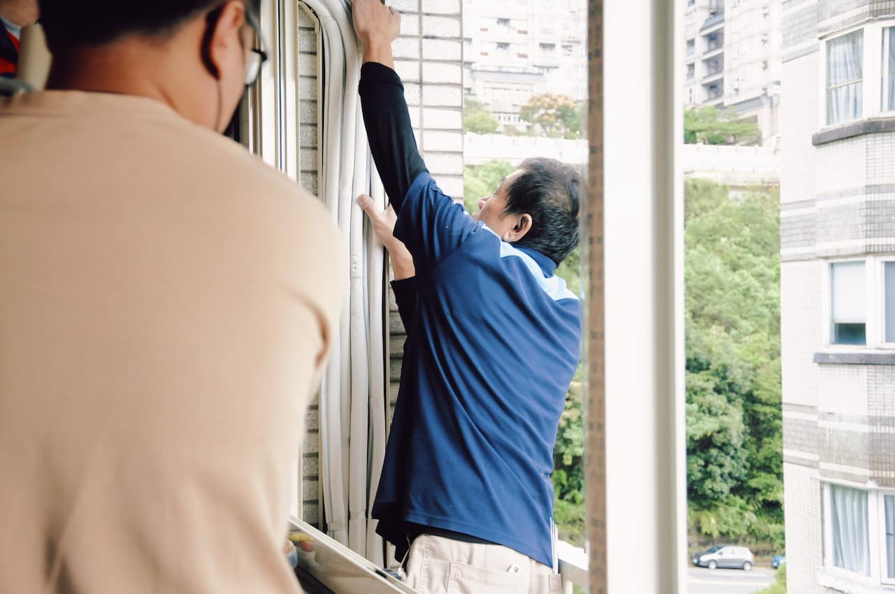 這天,冷氣管線工程如火如荼進行中。室內線路已整理完畢,接下來是安排室外機管線延伸的關鍵工作。