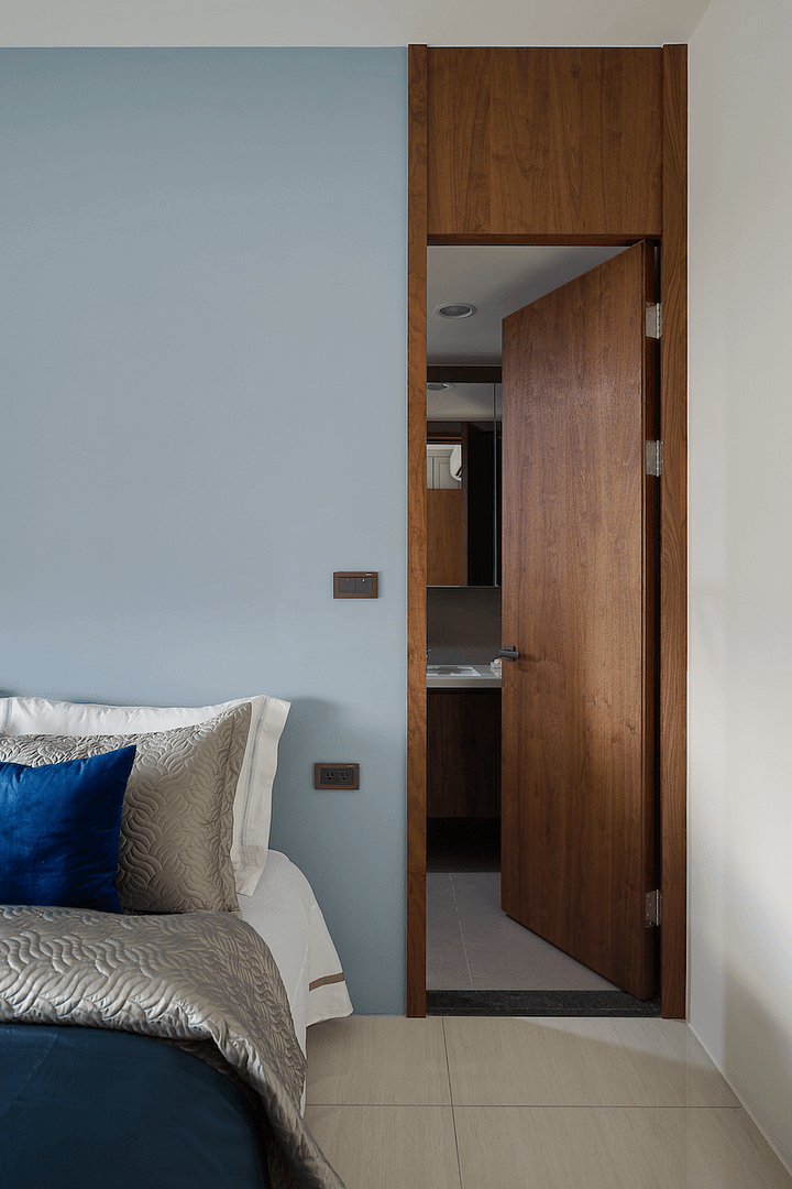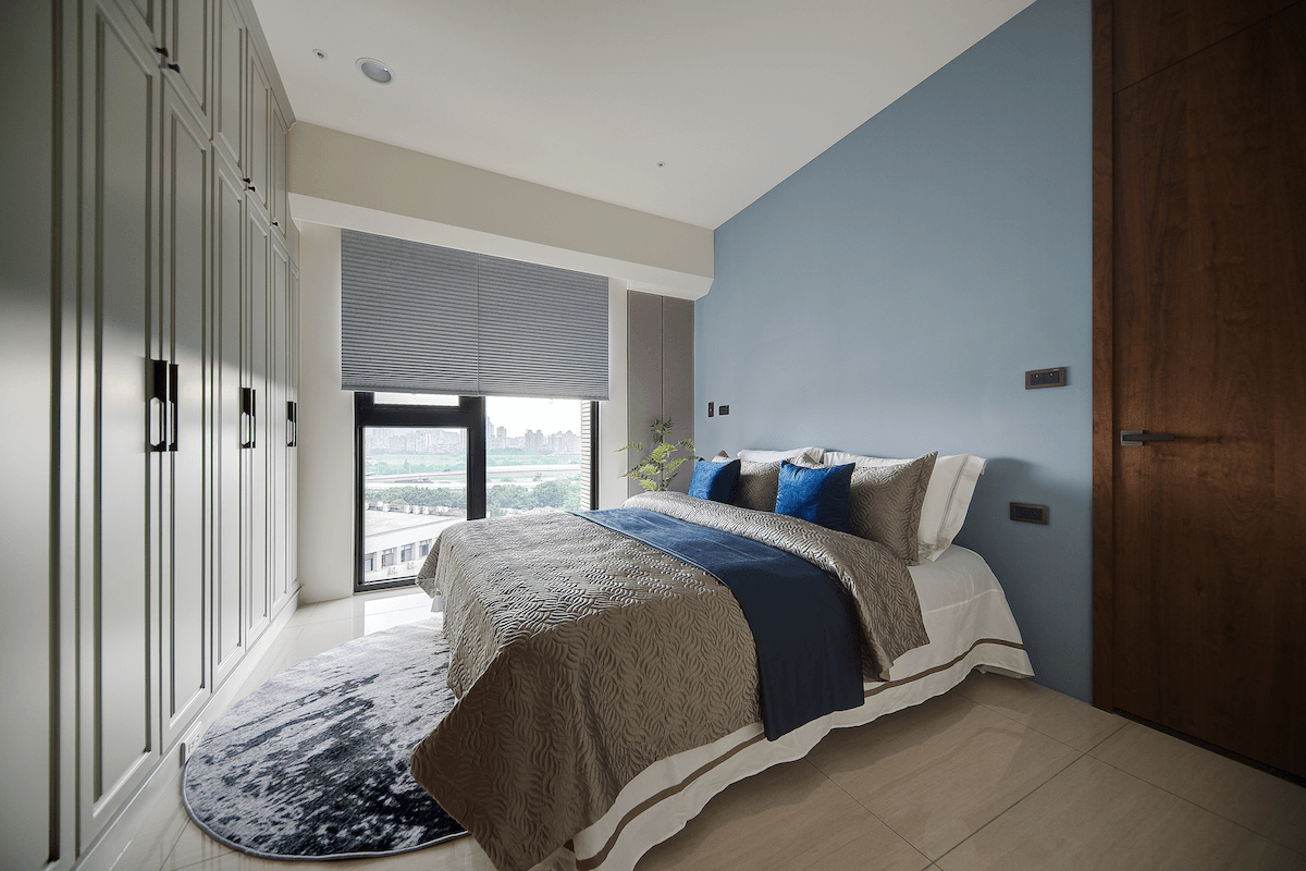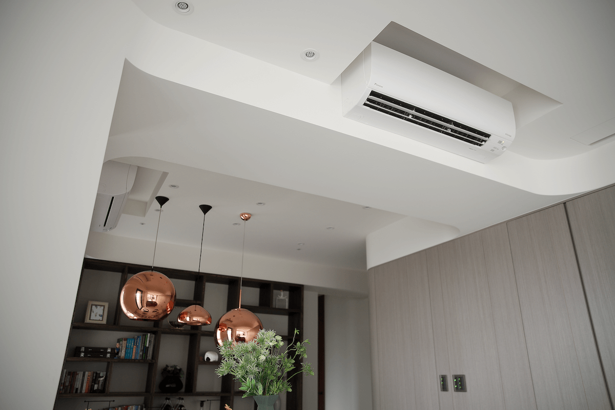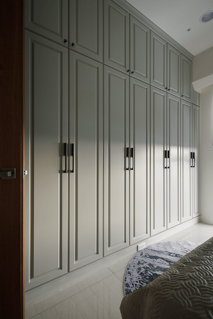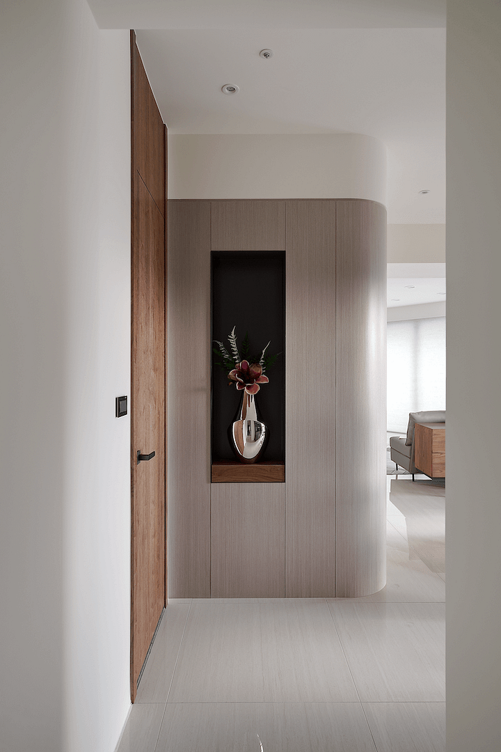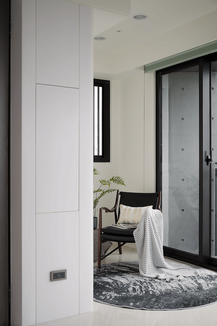 「建議餐桌由八人座改成六人座,就有空間做一個深度的串連,將客餐廳串在一起,會很大氣,廚房也用隱藏門的形式,做成與收納櫃同造形,整面牆看起來就大方。」