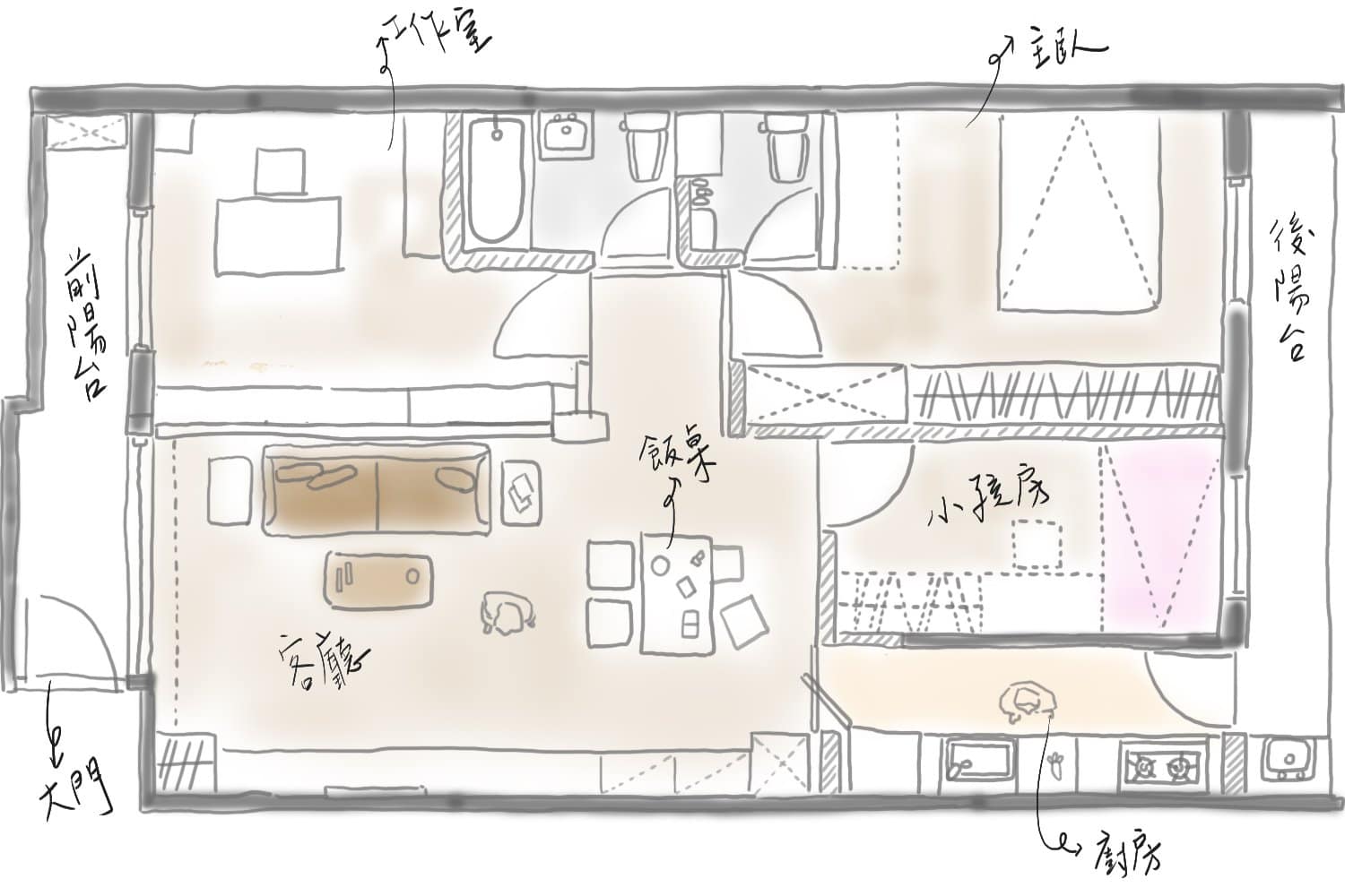 屋齡40年,在參與室內設計工作多年後,遇到一間適合人生下一階段房子,由電梯小套房住進樓梯老公寓,這個選擇事後來看是很好的。 在2021年5月新冠肺炎疫情三級警戒期間,正好讓小朋友有充足活動空間。