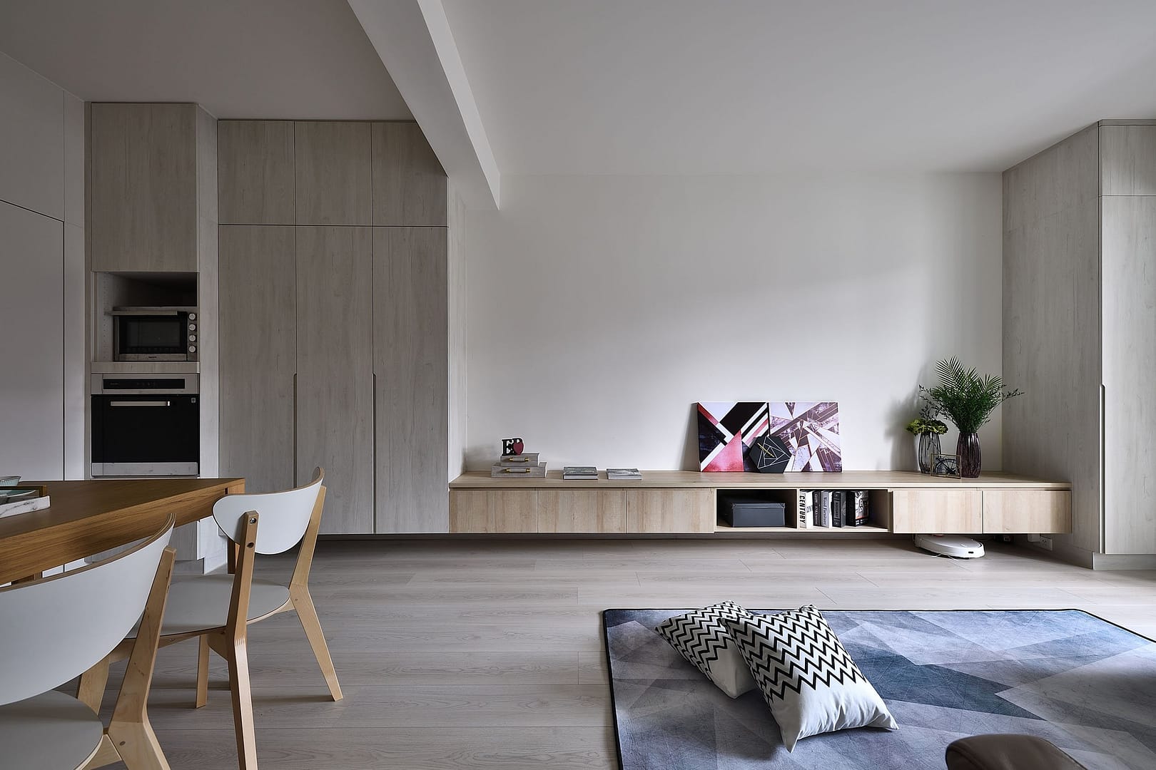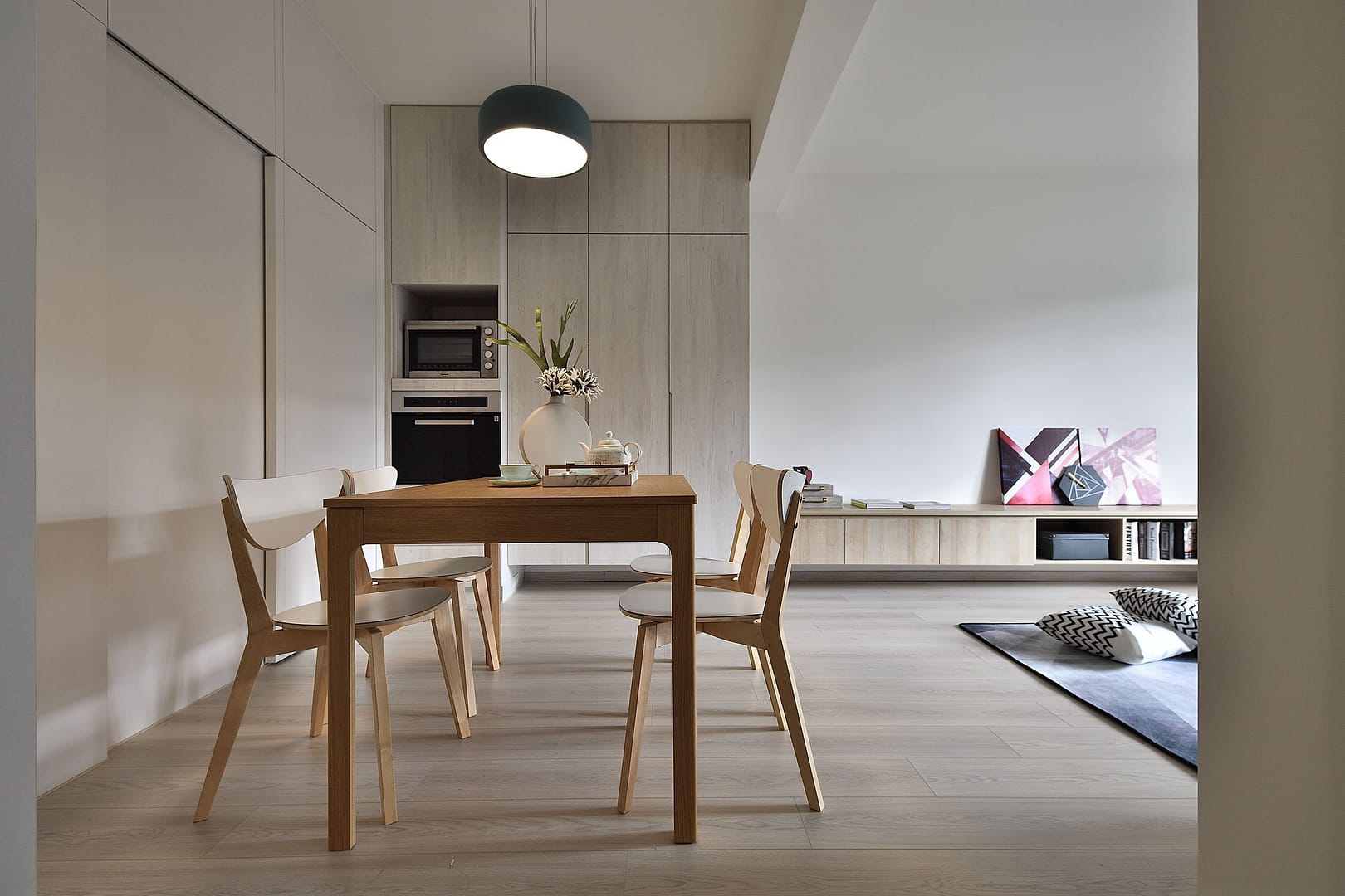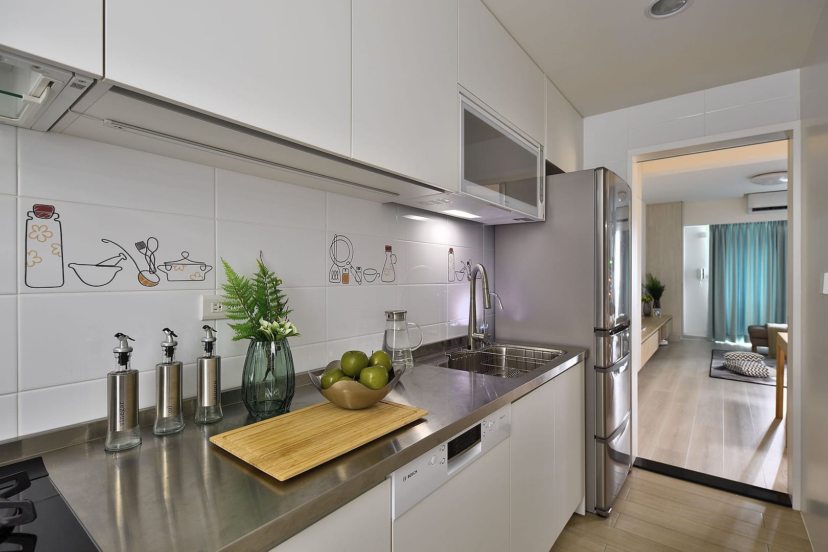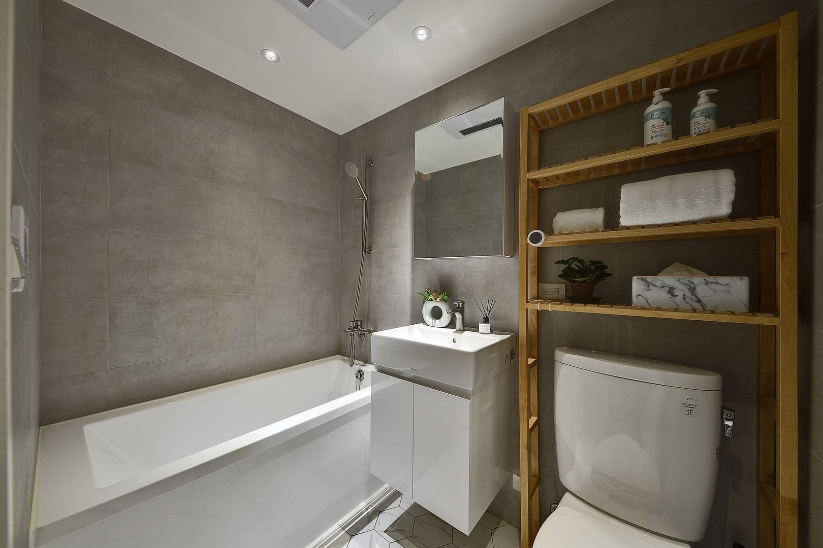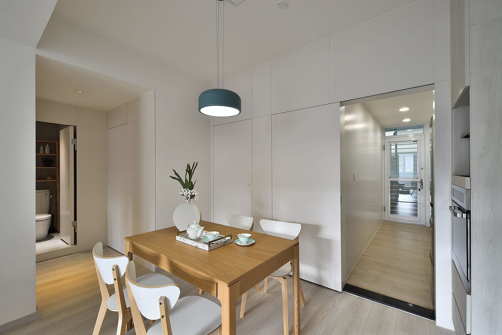 系統櫃、磁磚、超耐磨地板、隱藏門、六角磚、玻璃